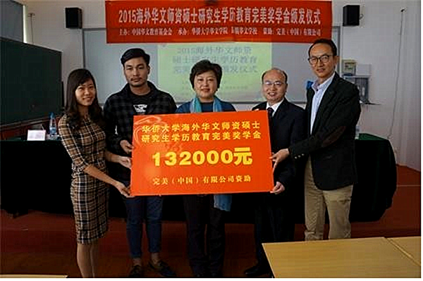 必赢华文学院2014级华语与华文教育专业昆明境外研究生班的15名境外研究生近日获颁13.2万元奖学金。该奖学金由中国华文教育基金会携手完美(中国)有限公司赞助。