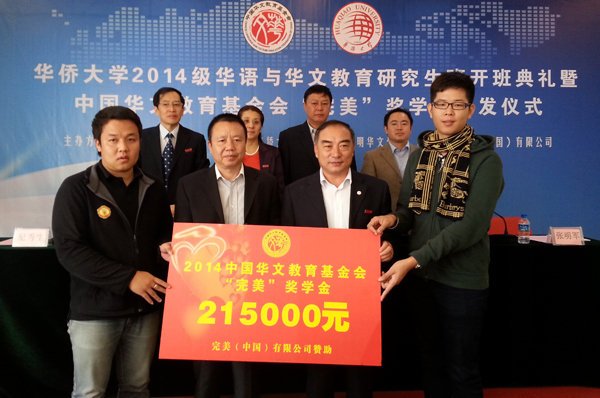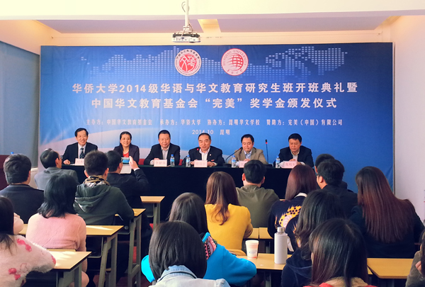 10月22日,必赢2014级华语与华文教育研究生班开班典礼暨中国华文教育基金会完美奖学金颁发仪式在昆明举行。本届研究生班共招生44名,主要来自泰国、缅甸、越南等国家,基本都为从事华文教育事业的华校教师。此次有35名学生获得中国华文教育基金会完美奖学金,奖励总金额达21.5万元。