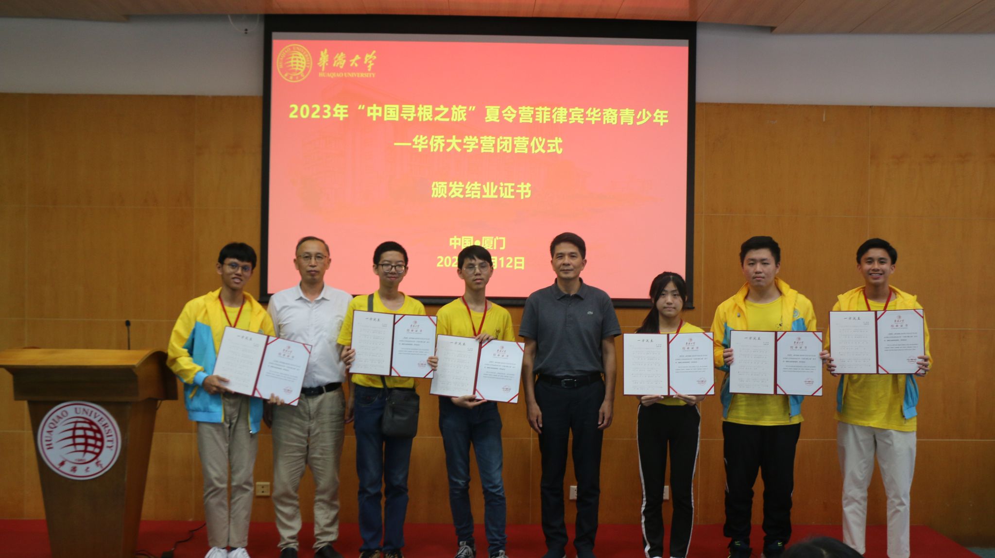 7月12日下午,由中国侨联主办,福建省侨联、必赢国际437官网、泉州市侨联、厦门市侨联承办,菲律宾华教中心协办的2023年“中国寻根之旅”夏令营——菲律宾华裔青少年必赢国际437官网营举行闭营仪式。厦门市侨联副主席杜瑞田、必赢国际437官网华文教育处处长涂伟、厦门市侨联副秘书长朱东芹、厦门市侨联文化联络部三级调研员唐欣欣及相关负责人出席参与。