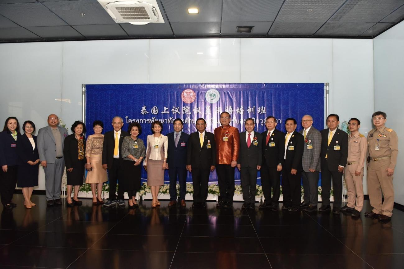 泰国上议院第二副议长素帕猜·宋乍仑阁下(Mr. Supachai Somcharoen)、泰国农业大学国际事务副校长甘巴纳·潘苏帕副教授(Dr. Kampanat Pensupar)出席开班仪式并致辞。上议院秘书处、农业大学人文学院、农业大学孔子学院中外方负责人及25位议员学员共同参加开班式。