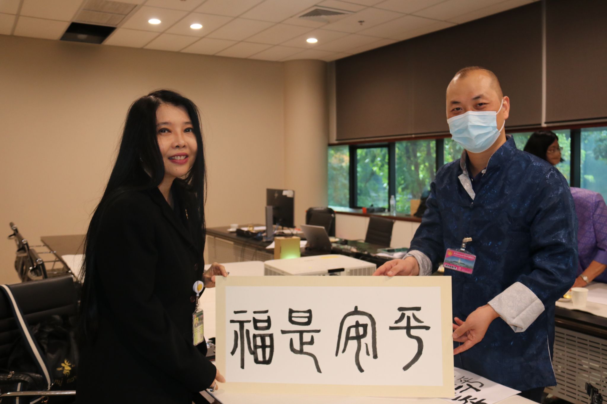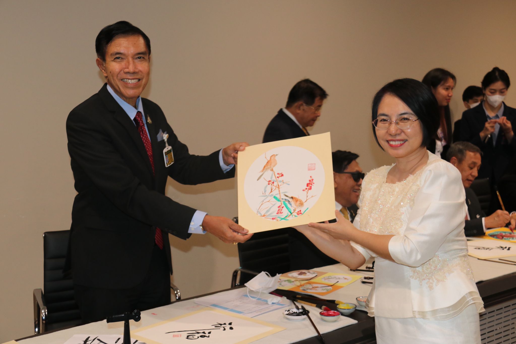 培训期间,农大孔院还与泰国上议院秘书处联合开展中华文化体验活动。在孔院教师和秘书处工作人员的辅助下,议员们临摹书法作品,体验心手合一、力透纸背的感觉;绘制中国花鸟画,学习水墨、色彩晕染方面的技巧;观摩中国茶艺演示,体验冲沏、闻香、品茗的乐趣。