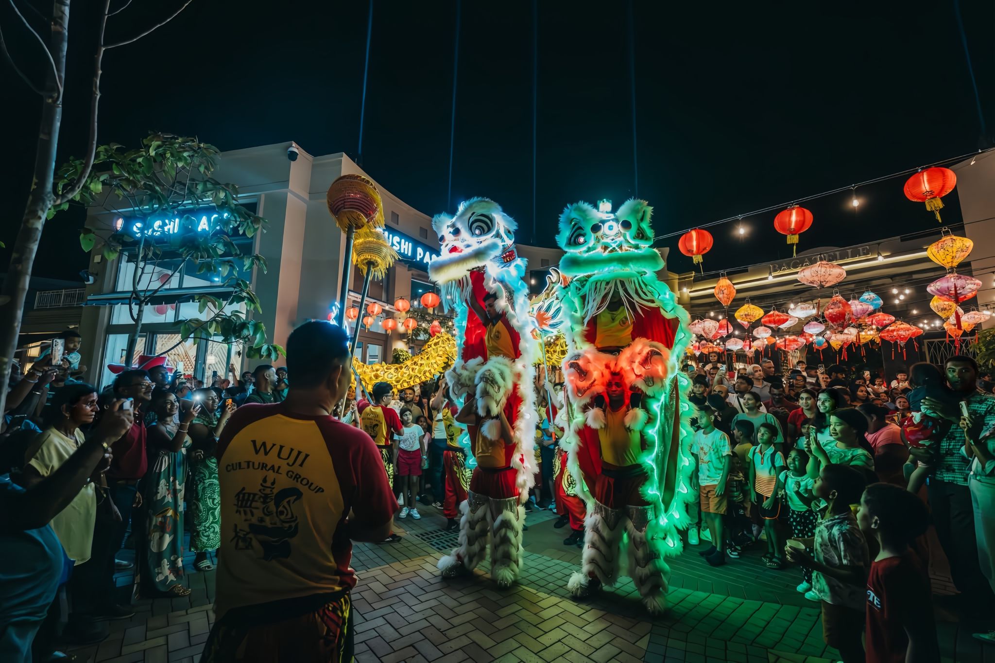 舞龙舞狮灯光秀表演吸引众多毛里求斯民众驻足观看