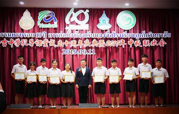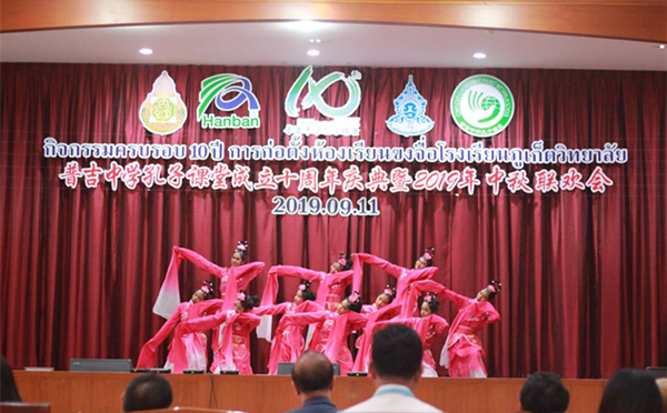 泰国普吉中学孔子课堂成立十周年庆典暨2019年中秋联欢会,9月11日在普吉中学銮波拋•普塔裟珞礼堂举行。