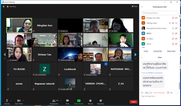 受疫情二次暴发的影响,讲座采用Zoom直播的方式在线开展,主场设在农业大学人文学院1号楼105室,来自泰国各高校的教师、中文专业博士、硕士研究生等300多人报名参与线上直播讲座。
