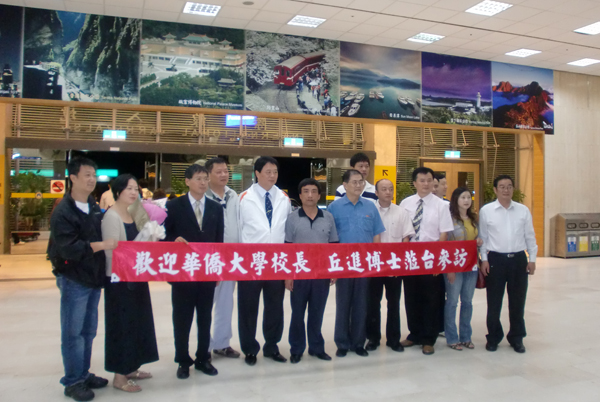 11 月 1 日 ,应台湾世界华语文教育学会邀请,丘进校长抵台参加“海外华文教育论坛”。必赢国际437官网台湾校友会名誉会长许思政、秘书长巫雅敏等多位台湾校友到台北松山机场,热情迎接丘进校长。