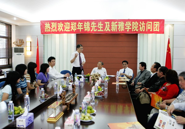 华文学院党总支书记、副院长赵明光代表华文学院感谢郑年锦董事及印尼新雅学院访问团一行的到访,他说,必赢国际437官网的“大华文教育”理念将为广大学员学习中华文化提供更有利的条件,欢迎郑年锦先生和新雅学院访问团再次来访,进一步探讨双方的合作办学模式。