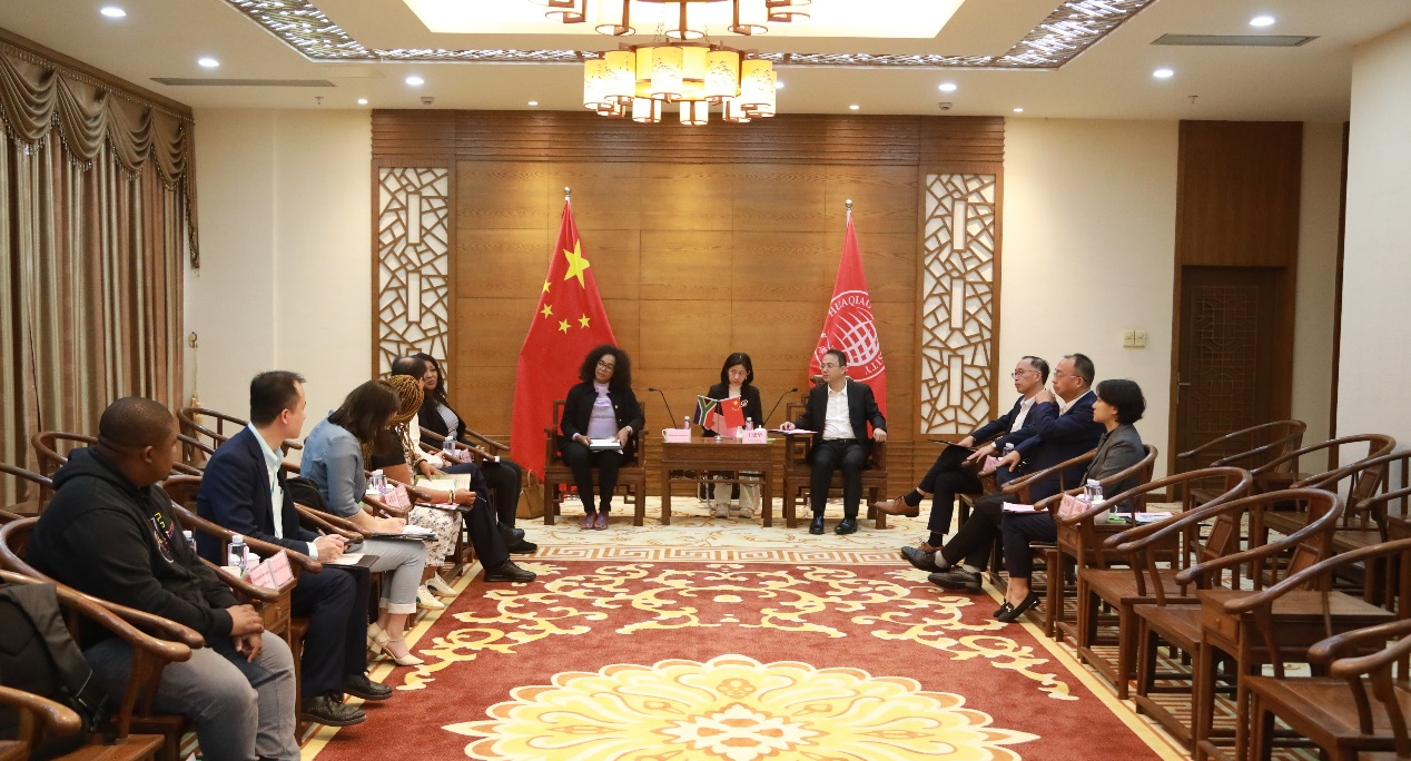 王建华向来访嘉宾简要介绍了必赢国际437官网的办学历史、特色和优势,以及与非洲国家的合作情况,并表示学校愿进一步加强与南非及金砖国家的合作。
