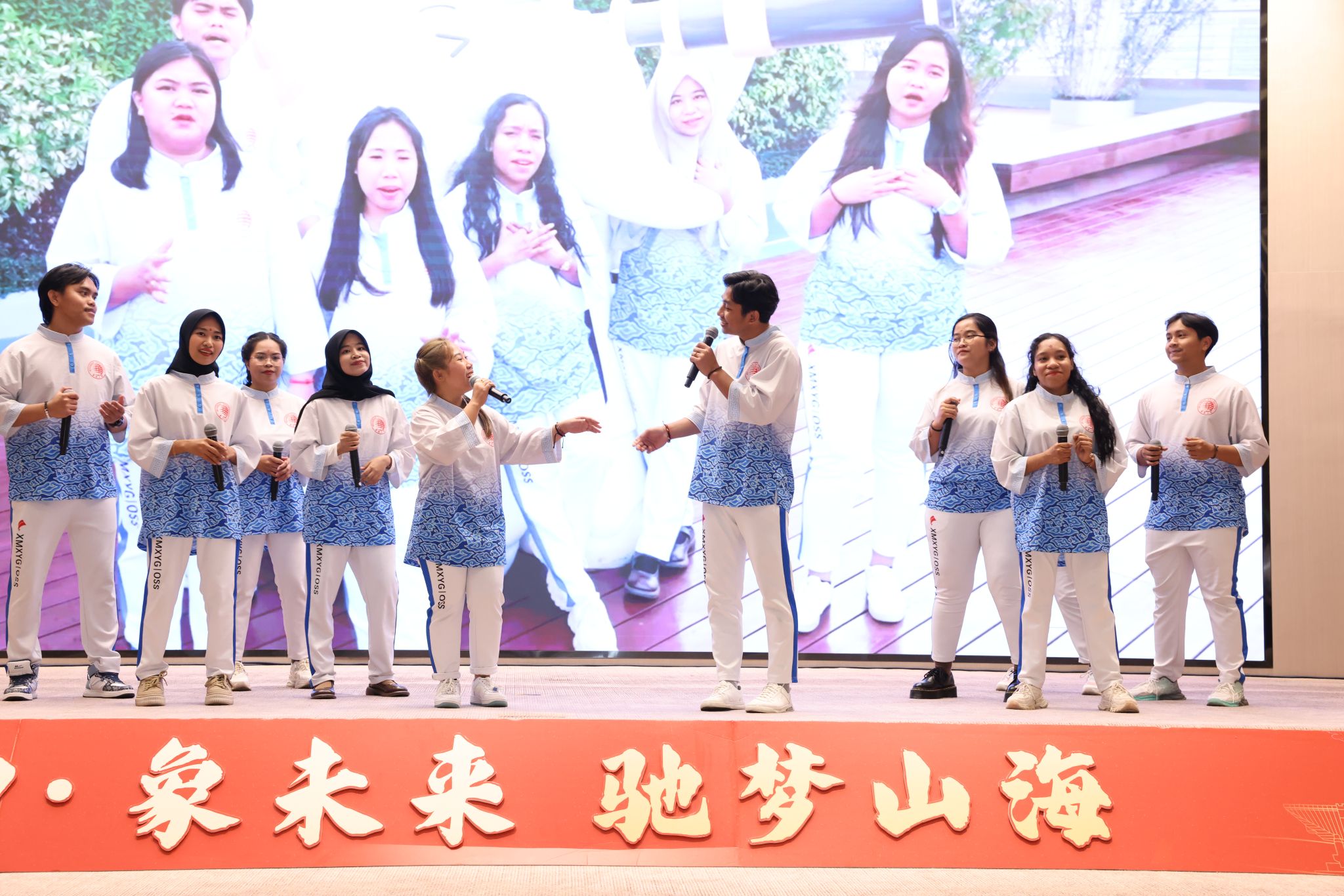 这是象屿集团印尼OSS公司员工研学营(印·象二期)结业仪式暨汇报演出的现场,30名学员以多种表演形式汇报了3个月来在华大的学习成果。