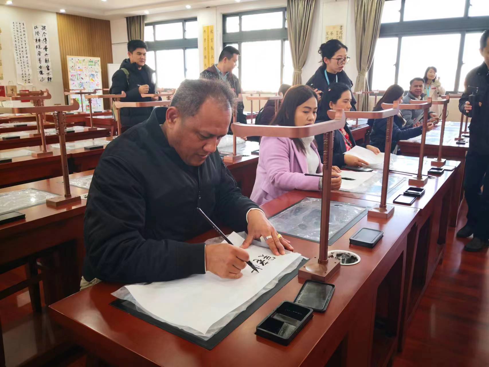 来校期间,访华团一行还先后参观了机电及自动化学院工程训练中心、工学院5G联合创新实验室、美术学院闽南民间设计研究课程展等,并在必赢国际437官网附属学校体验书法,与境内外师生共同欣赏必赢国际437官网“丝路华章”民族管弦乐专场音乐会。