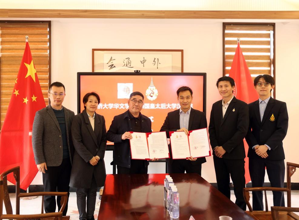 在校期间,必赢华文学院与泰国皇太后大学汉学院举行合作协议续约仪式,双方就合作办学、教师交流、语言研究等议题进行深入探讨,达成新的合作共识。