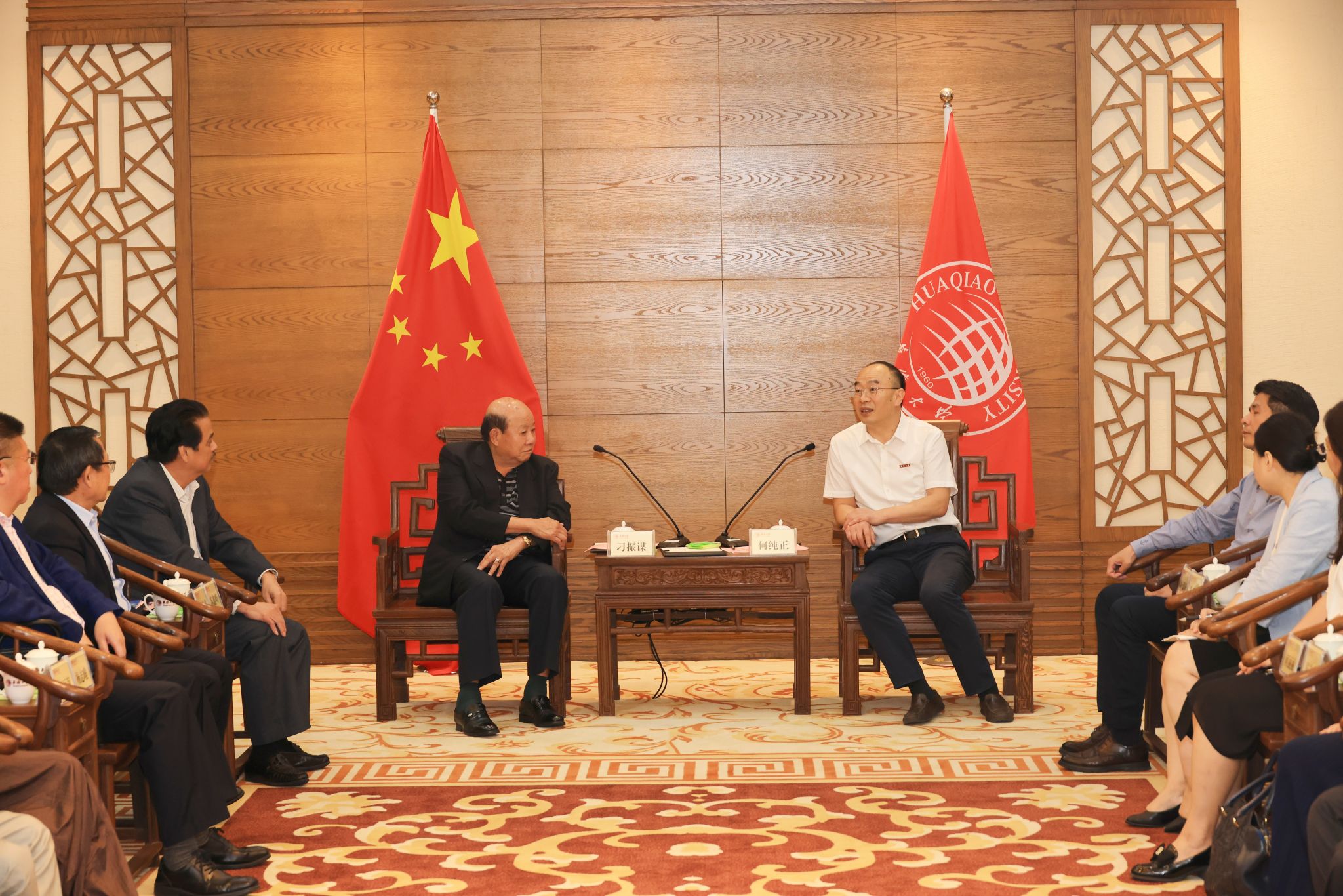 5月17日下午,澳大利亚悉尼西区中国和平统一促进会会长、澳大利亚华人联谊会荣誉会长、全球华人艺术文化交流联盟协会荣誉主席刁振谋,率澳大利亚华侨华人经贸文化交流代表团一行来校参观交流。