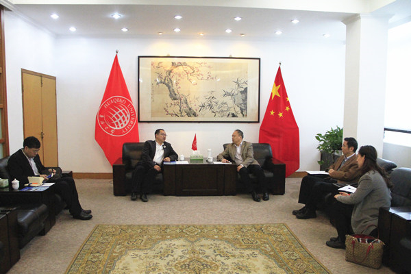4月14日上午,柬埔寨福建总商会执行会长黄可锦,副秘书长张国乐访问必赢国际437官网,商讨在柬埔寨开展华文教育合作事宜。副校长曾路在李克砌纪念楼四层会议室与来访客人会谈。