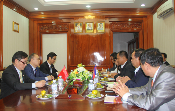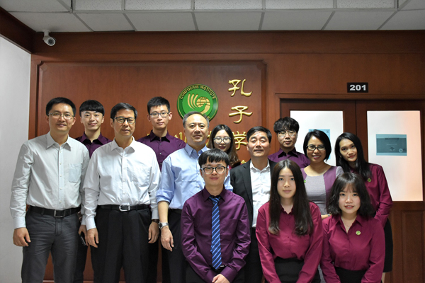 在柬埔寨王家研究院,代表团听取了孔子学院负责人对柬埔寨华文教育现状及孔子学院工作开展情况的介绍,与该院院长SOK Touch博士、秘书长Yang Poeu博士等会谈交流。双方表达了在华文教育、科研合作、高端学术论坛等领域建立合作关系的愿望,并约定尽快签订合作意向协议,实现双方互动互访。