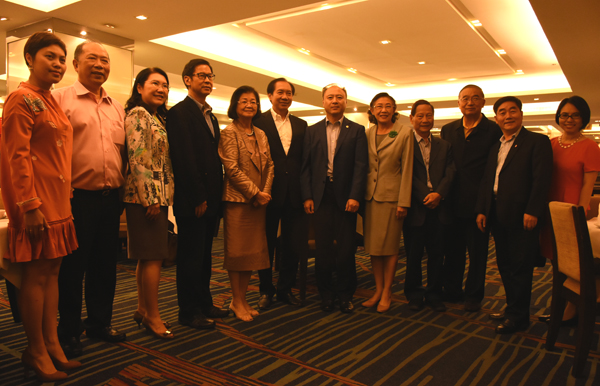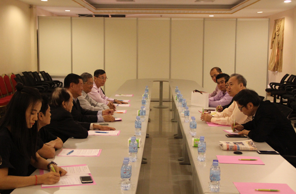 在泰中文化经济协会,会长颇欣·蓬拉军,副会长张祥盛、乌泰上将,秘书长蔡百山等接待了代表团。双方就泰国政府官员班等项目的拓展和管理工作进行了深入探讨,均表示要加强合作、密切沟通,为中泰友谊与合作交流作出新贡献。