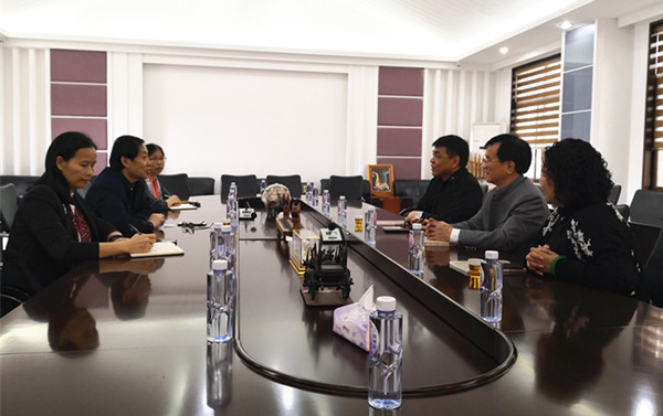 纪秀生代表学院对练金橓市长顾问和熊佑熊董事长的到访表示欢迎,并介绍了学院的办学历史和特色,重点介绍了学院开展“一带一路”沿线国家政府官员中文学习班项目,希望以此次访问为契机,推进双方在该项目上的合作。