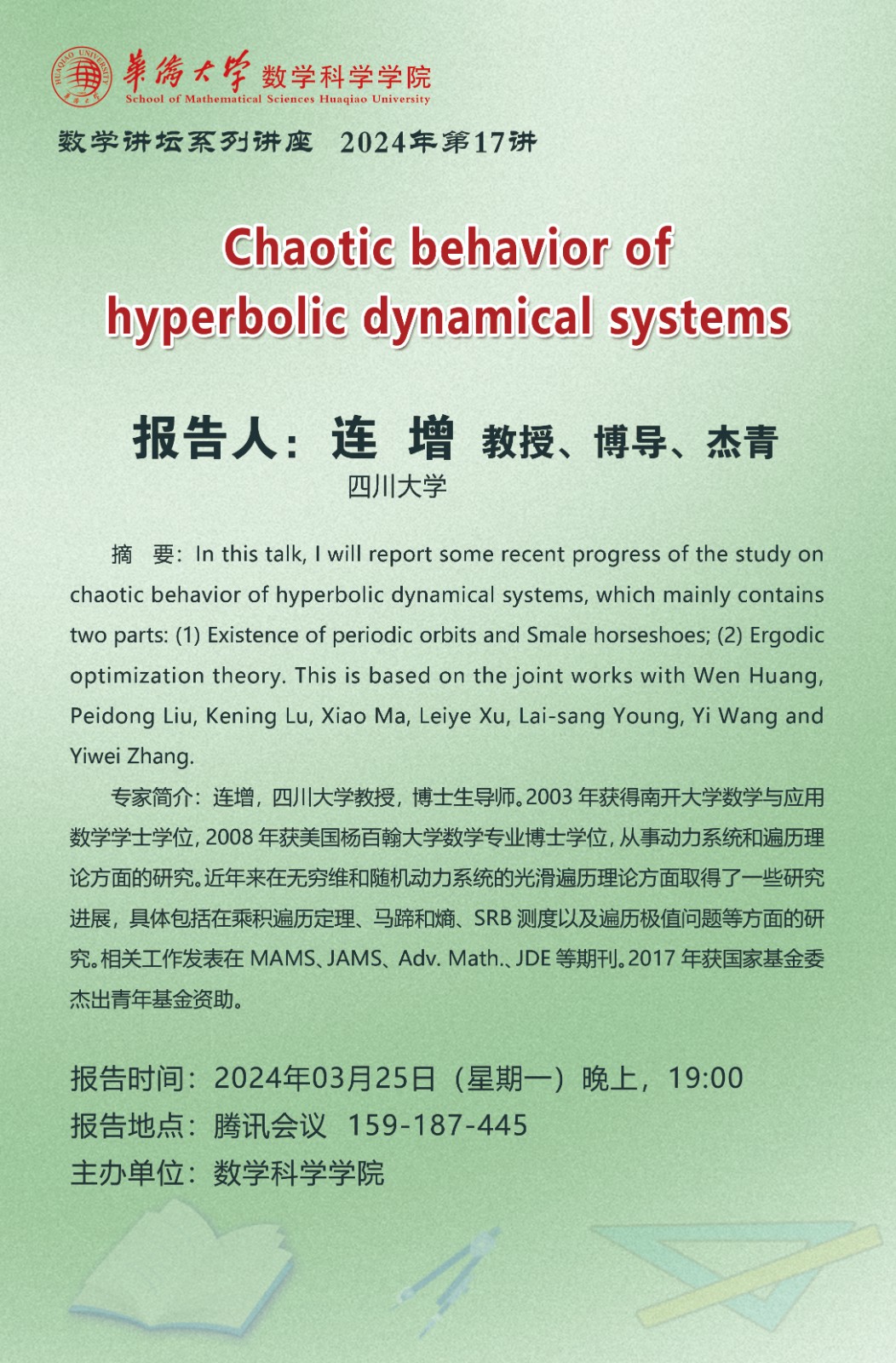 数学讲坛系列讲座 2024年第17、18讲