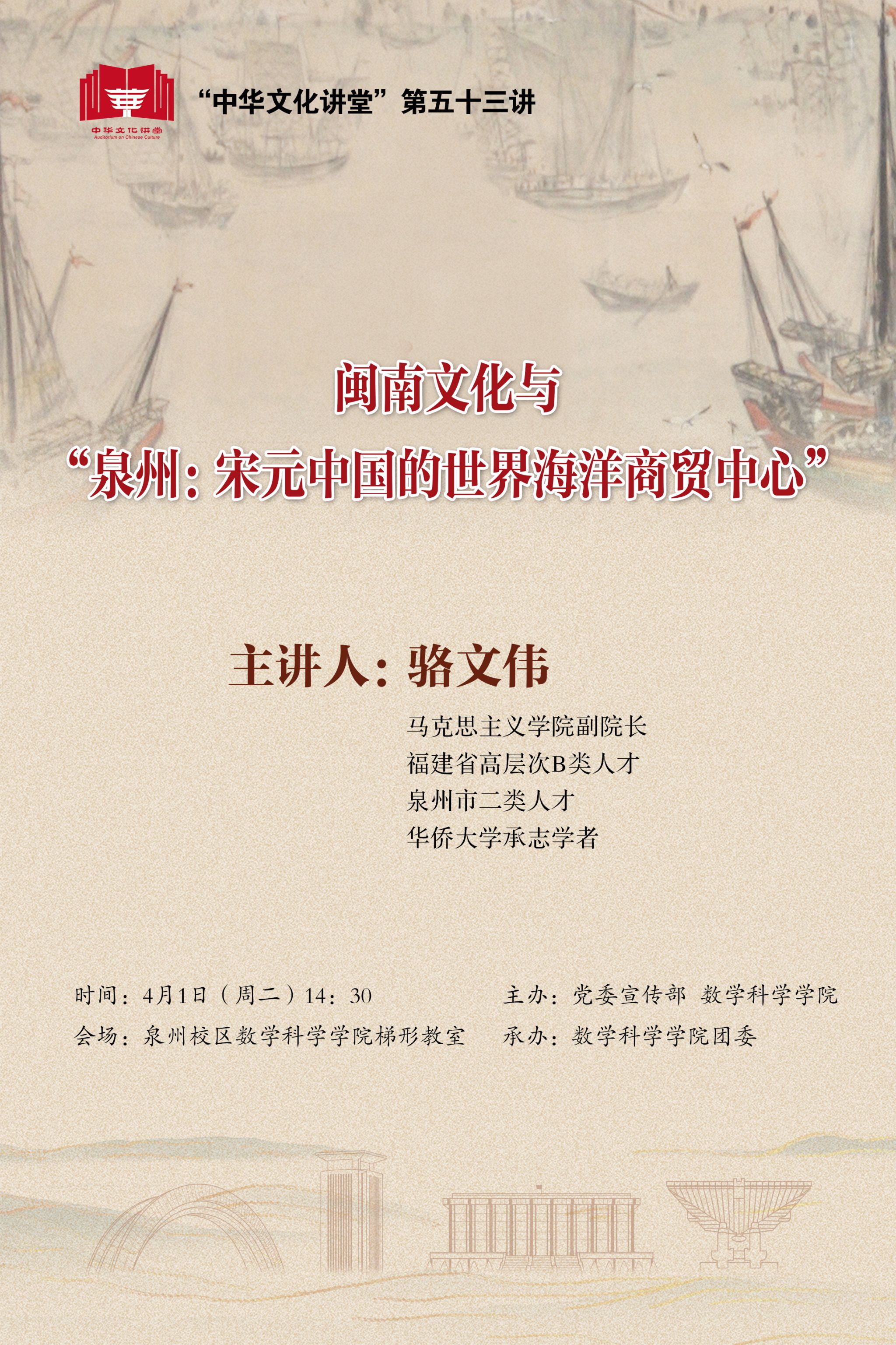 “中华文化讲堂”第五十三讲:闽南文化与“泉州:宋元中国的世界海洋商贸中心”