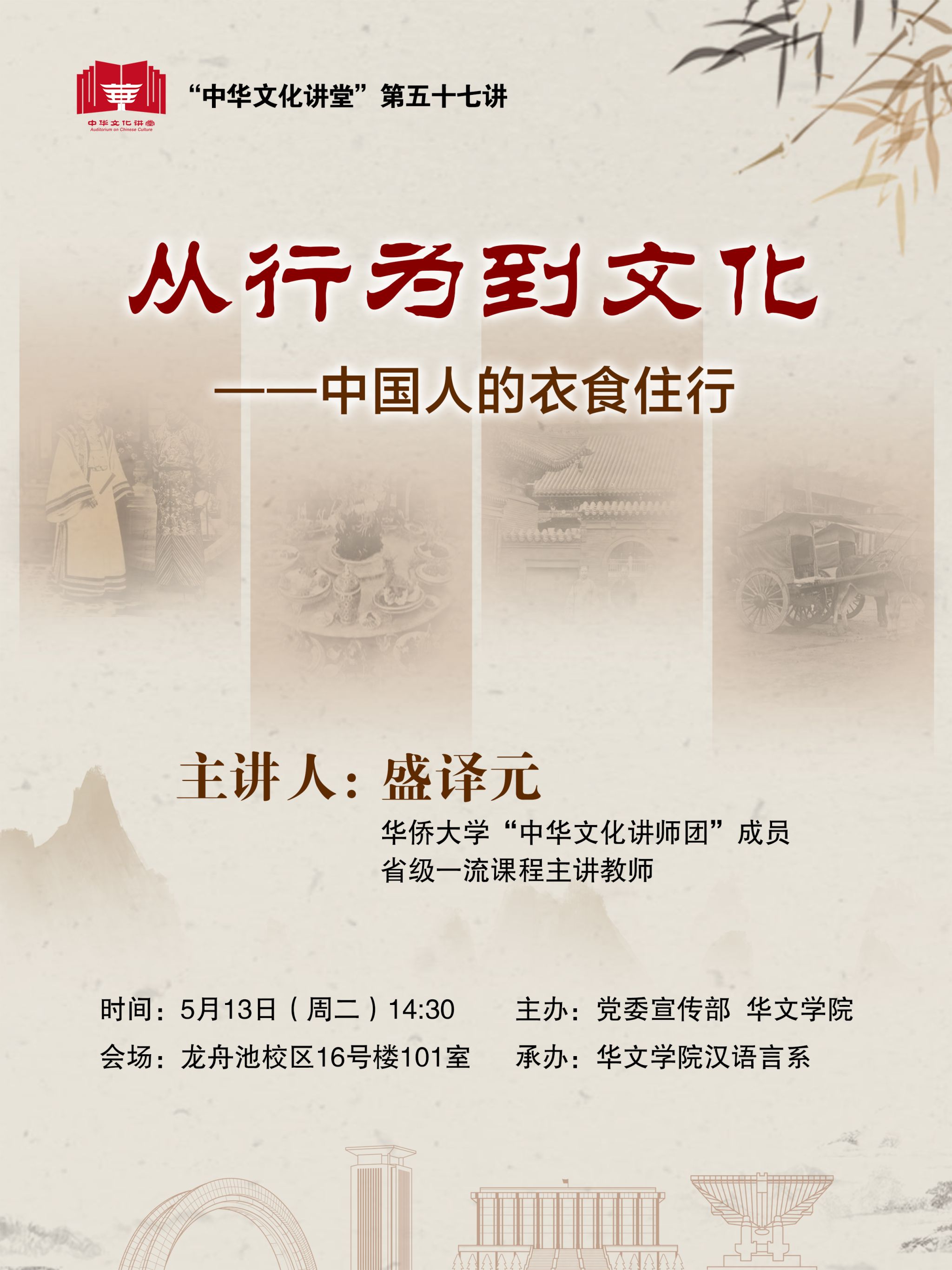 “中华文化讲堂”第五十七讲:从行为到文化——中国人的衣食住行