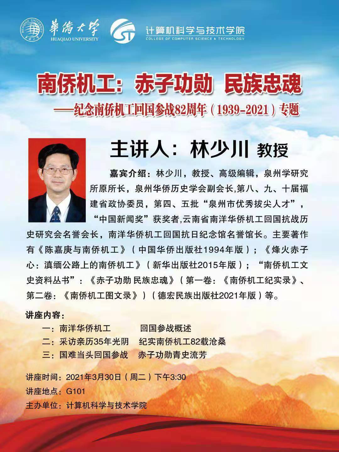 计算机学院讲座:《南侨机工:赤子功勋 民族忠魂》