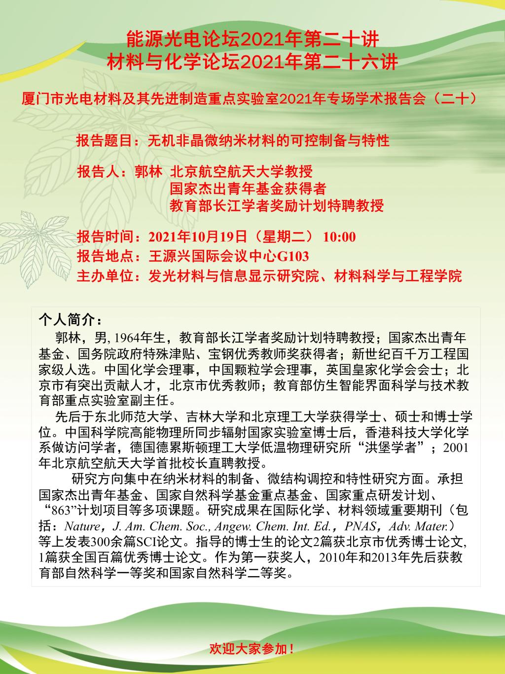 能源光电论坛2021年第20讲暨材料与化学论坛2021年第26讲