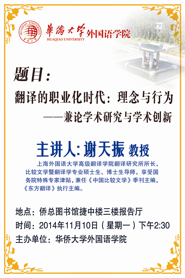 预告:上海外国语大学谢天振教授《翻译的职业化时代:理念与行为》