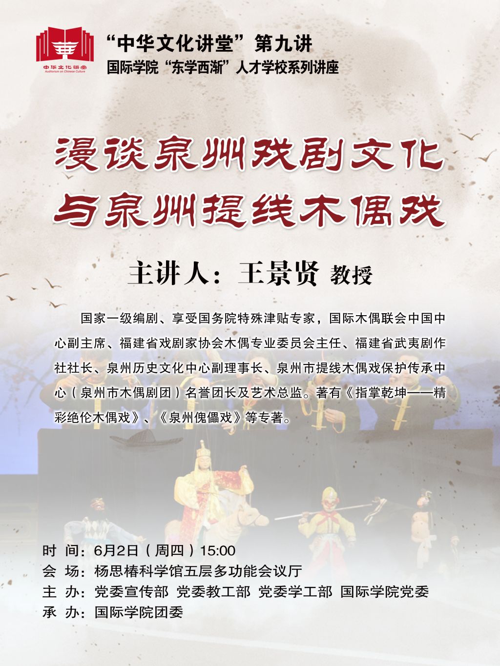 “中华文化讲堂”第九讲:漫谈泉州戏剧文化与泉州提线木偶戏