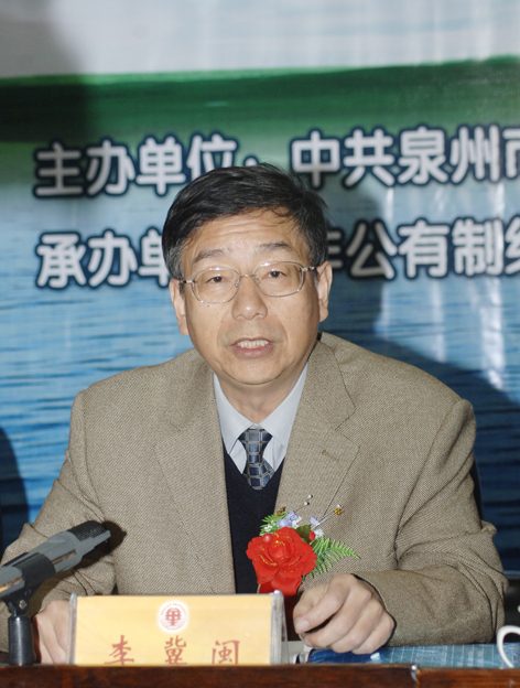 李冀闽书记为研讨会致开幕辞,他说,改革开放30年来,泉商以特有的精明、诚信和拼搏闻名于世,是泉州经济社会发展的一支重要力量,促进了泉州地区非公有制经济的蓬勃发展, 形成了泉州非公有制经济的独特优势。大会的召开为大家搭建了一个研讨非公经济和泉商文化的平台,希望大家积极参与交流,从文化底蕴的角度,深入探讨非公经济和泉商现象及发展历史,探讨当前非公经济理论和泉商文化的新课题。