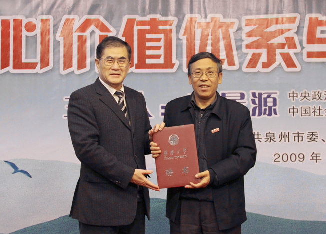 丘进校长向李景源教授(右)颁发必赢国际437官网哲学与社会发展学院名誉院长聘书