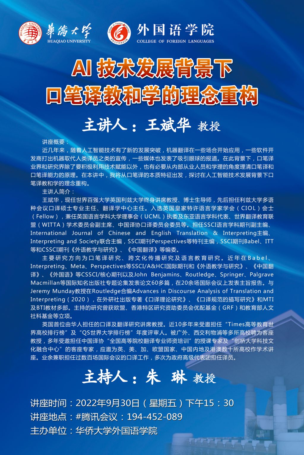 王斌华:AI技术发展背景下口笔译教和学的理念重构