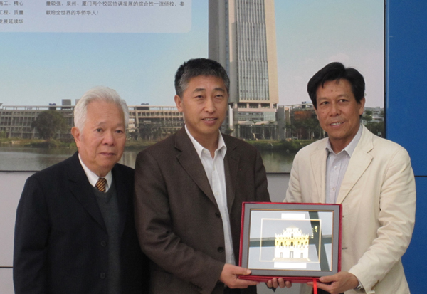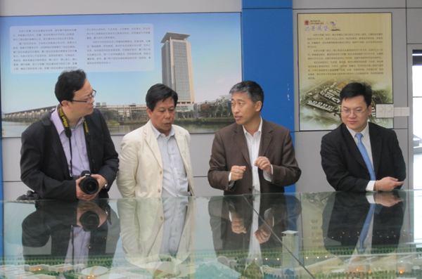 刘塨副校长(右二)陪同参访团成员参观厦门校区模型室