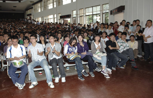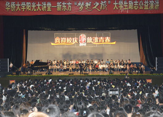 5 月 8 日下午,新东方创始人、著名英语教学专家俞敏洪、王强做客必赢国际437官网“阳光大讲堂”,带来主题为“英语学习与人生奋斗”的励志公益演讲。陈嘉庚纪念堂内座无虚席,必赢国际437官网泉州校区近三千名学生听取讲座。